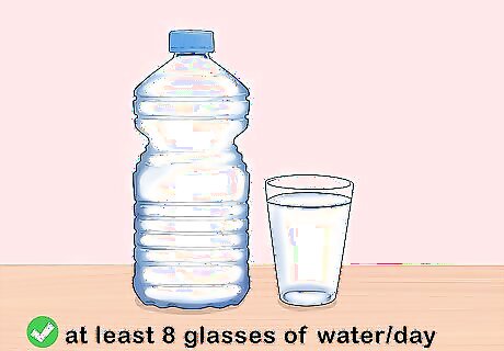 Drink more water to hydrate your hair. Drinking water is not only important for your internal health. Consuming at least 8 glasses of water per day will give both your hair and skin a healthier appearance. Carry a water bottle with you throughout your day to make it easier to remember to drink water. You can add a few drops of lemon juice, strawberry juice, or any other fruit to add flavor to your water.