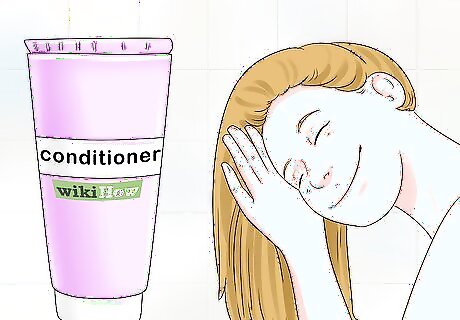 Try co-washing with conditioner. Shampoo can strip your hair of its natural oils, so if you have dry hair, skip the shampoo. Simply condition your hair in the bath or shower, instead of using shampoo on your hair. If you need to shampoo your hair, try to cut down the use of it to once a week. Co-washing may not be the best option for people with naturally oily hair. This method of washing is ideal for curly hair.