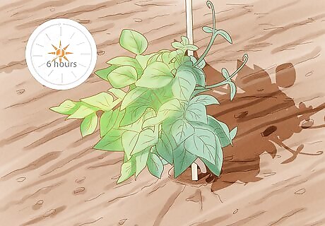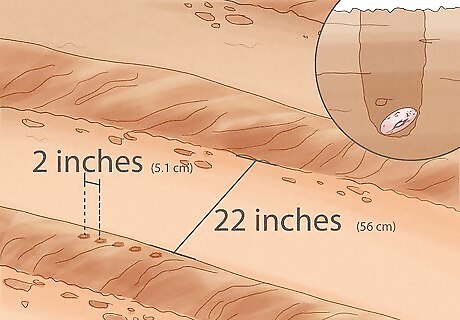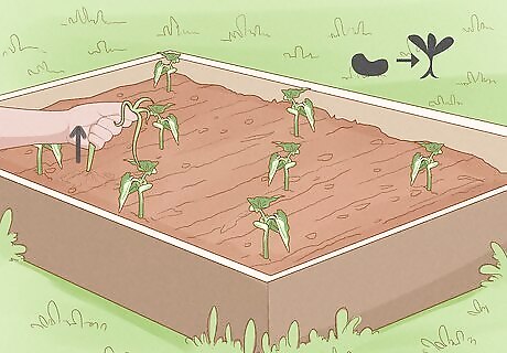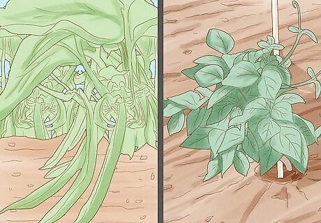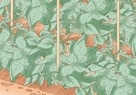 Build a trellis or similar structure for pole varieties. Once they reach the seedling stage, pole varieties of pinto beans need a support system for the vines to grow. You can expect the vines to grow as much as 6 feet (1.8 m) high, so plan ahead. If you have a smaller number of plants, use single stakes instead of a more elaborate trellis system. Your local farm and garden store sells supplies for support structures and can help you figure out what kind of system is best suited to the land and bean variety you've chosen.