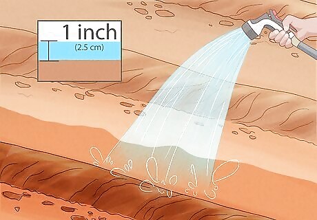 Do a percolation test to determine how well your soil drains. Farm and garden stores sell percolation test kits, but you can also do this yourself. Just dig a hole at least 12 inches (30 cm) deep and 12 inches (30 cm) wide and fill it with water. Let the water sit overnight, then refill it the next day. Every hour or so, measure the water level until the hole is empty. Ideally, the soil will drain anywhere from 1 to 3 inches (2.5 to 7.6 cm) of water per hour. If your soil drains too fast, incorporate compost or other organic matter to help it hold moisture. It can also help heavier soils drain. If you augment your soil with compost or other organic matter, do another percolation test to see if the drainage has improved.