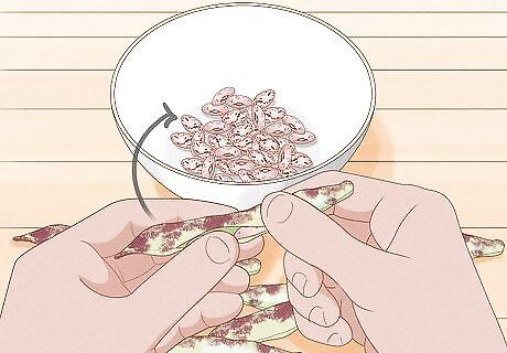 Shell the beans by hand and store them in a dark, dry place. After harvest, hang the pods upside-down inside to dry. Shell them after they're completely dry. To remove all the bits of plant material left on the beans, take them outside on a dry, windy day and pour them between two containers. Then store them in bean sacks, jars, bins, or other dry containers. Dried beans can be stored for several years, but after 3 years or so they'll lose their ability to absorb water and won't be suitable for cooking.