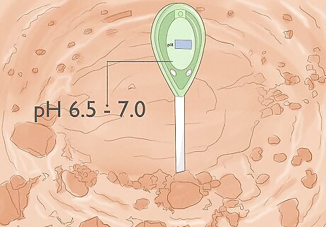 Plant in soil with a pH between 6.5 and 7.0. Buy a ph testing kit at your local farm and gardening center and check the soil where you want to grow your pinto beans. If the pH is too low, add agricultural limestone to the soil. If it's too high, augment the soil with either aluminum sulfate or sulfur. Make a visit to your local farm or gardening store to buy the materials you need. Work them into the soil well before you plant your seeds and do another pH test to see if any further augmentation is required. If your soil's pH is over 7.0, test for possible zinc deficiency as well.