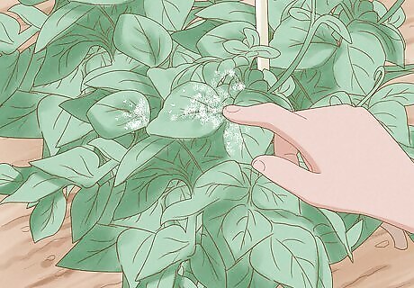 Inspect plants at least once a week for signs of insects and diseases. Dry beans are susceptible to leaf feeders and cutworms, especially before they're established. Be on the lookout for whiteflies as well. If you don't know what these pests look like or what signs to look for, get identification information from your local agricultural extension. Your local agricultural extension will also have information about pests that are particularly likely in your area, along with tips on how to manage them. Dry beans, including pintos, are more susceptible to diseases if you live in a more humid area. Adequate drainage is important if you get heavy rainfall since poorly drained soil can cause fungal growth.
