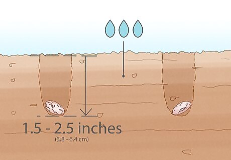 Drop seeds 1.5 to 2.5 inches (3.8 to 6.4 cm) into moist soil. Don't plant your pinto beans if the topsoil is dry. Water the seedbed and wait a day for the moisture to soak into the soil. If the topsoil is dry and you don't have time in your planting schedule to wait, you can also plant them a little deeper to ensure they get the moisture they need.