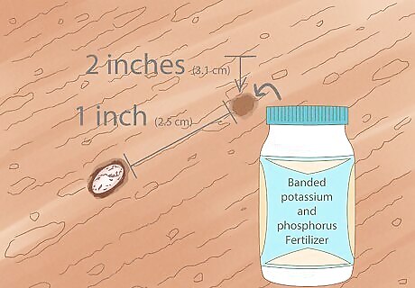 Inoculate your beans to help them fix nitrogen around their roots. If your soil is low in nitrogen, buy a bean inoculate and your local farm and gardening store, specialty nursery, or through a seed catalog. Inoculation is typically cheaper than adding supplemental nitrogen to the soil later on. You can also treat your seeds with fungicide or insecticide before planting. Inoculation isn't recommended if you're planning on irrigating your beans.