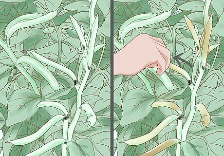 Ensure your beans get at least 1 inch (2.5 cm) of water a week. In many areas, you'll get enough rainfall that you won't need to water your beans at all. If you go through a dry spell, though, water the plants yourself until the soil is wet to a depth of at least 6 inches (15 cm). In larger gardens and in drier areas, set up an irrigation system. If you use sprinklers, shut them off around 2 or 3 p.m. to allow the foliage to dry before sunset. Stop watering as soon as the pods start to turn yellow to give them a chance to dry out before harvest.