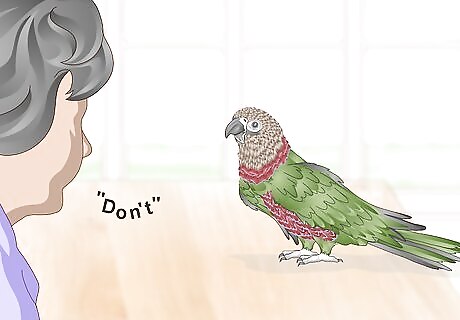 Talk to your parrot in a gentle voice. If your hawk-headed parrot is biting or acting aggressive, gently say “no,” or “don’t,” and speak to it in a soothing and reassuring voice. If you stay calm, your parrot will feel more secure and at-ease. Yelling or raising your voice will only upset your parrot, and is likely to make the behavior worse.