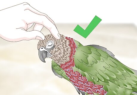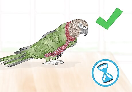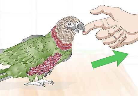 Give your parrot a few seconds to calm down. If your hawk-headed parrot gets over-excited or tries to nip at you during play, step away and let it calm down for a few seconds. Hawk-headed parrots become overstimulated easily, and an aggressive parrot may simply need a moment to rest.