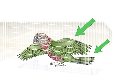 Listen for loud shrieks or hissing. Hawk-headed parrots are fairly vocal birds. When hawk-headed parrots get annoyed or excited, they make a loud, high-pitched call. An angry or frightened parrot may hiss. These sounds are warning signs that your parrot is upset or overstimulated, and may signal aggressive behavior. Don’t try to handle your hawk-headed parrot if it is making these kinds of sounds.