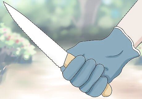 Use garden gloves and a serrated knife. Make sure the knife is sharp and clean to cut the Kohlrabi bulb safely. Use gloves to protect your hands. A serrated knife is the most effective for harvesting kohlrabi. Sometimes the roots can be tough to remove.