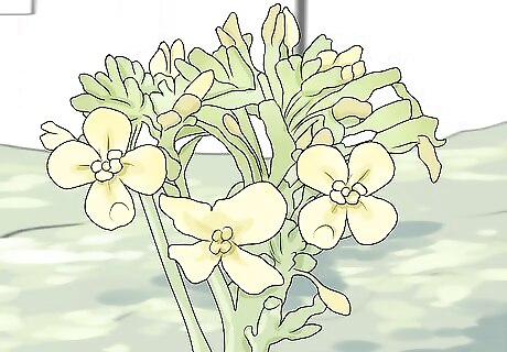 Wait for yellow flowers to grow on your kohlrabi. The flowers are where the seeds grow. The seeds are ready to harvest once the flowers start to turn brown. Harvest before the flowers become too mature. They will start to break and attract birds.