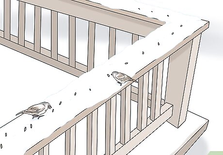 Put out bird seed. Line the railing of a deck or patio with birdseed, or coat pinecones in peanut butter and then roll them in birdseed. Place them somewhere you can see easily from a window, and have fun watching and trying to identify all the birds that show up for a snack.