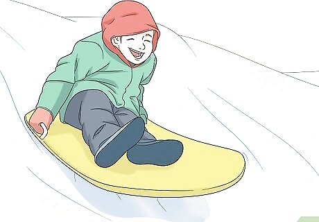 Go sledding. Grab a plastic sled or toboggan and go sledding down the nearest hill If you don't have a sled, you can use a plastic inner tube, a cardboard or plastic box lid, or a cookie sheet or cafeteria tray. You can also try snowshoeing or cross-country skiing if you have the equipment!
