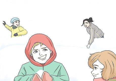 Have a snowball fight. Get together with friends or family and divide into two teams. Post up on either side of your yard and throw snowballs at each other. You can build walls or forts to help protect yourself from the other side. When you're tired, fall in the snow and make a snow angel! Make the perfect snowball by packing snow when the weather is close to freezing. Slushy, icy, or powdery snow will not work as well for making good snowballs.