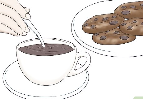 Make hot cocoa and cookies. Stir some hot cocoa mix into hot milk or hot water and top with marshmallows. Make your favorite cookie recipe, or try some super-easy peanut butter cookies using 1 cup of peanut butter, 1 cup of sugar, and 1 egg.