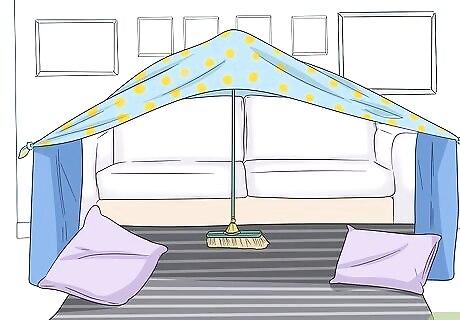 Make a blanket fort. Use chairs, couches, and tables as the sides of your fort to drape blankets over. Then stuff the inside of the fort with plenty of pillows, flashlights, games, and snacks. You could also go “indoor camping” by bringing sleeping bags into your blanket fort or a tent set up inside, and make s'mores over the kitchen stove or fireplace.