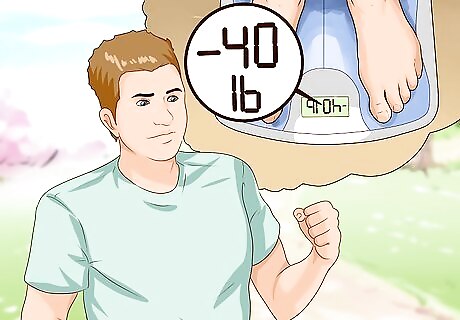 Set shorter-term sub-goals. One of the best ways to work towards a large goal (which may seem overwhelming) is to set short-term guidepost goals along the way. Short-term goals should also be specific and measurable, and they should lead you towards your ultimate long-term goal. For example, if you are trying to lose 40 pounds, you may want to make your first short-term goal(s) “lose 10 pounds,” “exercise 3 times per week,” and/or “limit dessert to one time per week.” If you are trying to save $3000, you might make your first short-term goal(s) “save $500,” “limit eating out to twice per week,” and/or “have our weekly movie night at home instead of at the movie theatre.”