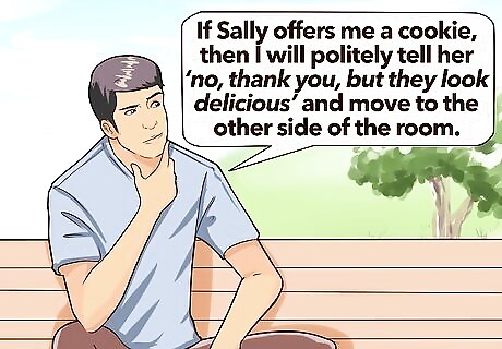 Use “if-then” thinking. An if-then statement can help you know how to react when you feel tempted. You can “rehearse” how you will react to a given situation by coming up with some if-then scenarios ahead of time. This can help when you know you will be in a situation in which you will experience temptation. For example, if you know that you are going to be at an office party with many cookies, you can use the if-then statement “If Sally offers me a cookie, then I will politely tell her ‘no, thank you, but they look delicious’ and move to the other side of the room.” If you are working on spending control, you might have the if-then statement, “If I see something that I really like on sale at the mall, then I will write down the item number and price and go home. If I still want to make the purchase the next day, I can send my husband to pick it up for me.”