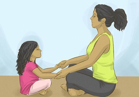 Help your child learn soothing or relaxation techniques. Children of parents with PTSD can actually take on some of the symptoms of trauma. To minimize the chances of your child becoming depressed or anxious, work with your doctor or a school counselor to teach them exercises to manage stress and anxiety. These techniques may be useful for you, your child, or anyone else in the household. A quick and easy relaxation technique to soothe anxiety is calm breathing. Have your child practice this by taking a slow breath in through the nose for about 4 counts. Then, have them hold the breath for 1 or 2 counts. Exhale through the mouth for 4 counts. Wait a few seconds and then repeat for 5 to 10 breaths or until they start to feel calm. Other helpful soothing techniques that your child can learn include guided imagery or visualization and progressive muscle relaxation.