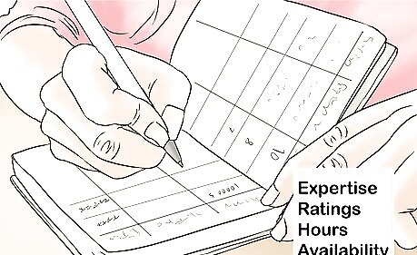 Compile a list of candidates. List possible ghostwriters you find from referrals, online freelance sites, job ad responses, and agency suggestions. Note things you like about them, which can help you identify the best candidates for your needs. Some things to note on your list include: Where you found the candidate Ghostwriter’s location Areas of expertise Feedback and ratings Number of hours worked for specific projects Years of experience Availability Hourly or project rate