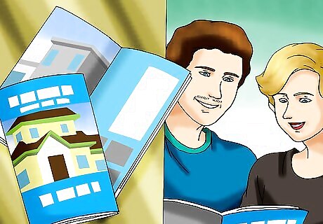 Print brochures. While digital advertising seems to be the easiest and most widespread method of advertising, it's important to remember that not everyone has an interest in using the internet. Some people prefer to read about listings in print, while others may decide on a whim to view an open house without having checked online, and may need additional information. A brochure should list information about the property, such as the square footage, number of bedrooms/bathrooms, and asking price. It should also include your name and contact information, so that visitors can follow up with any questions or offers after the open house. You may wish to include some photographs in the brochure, in case a buyer is on the fence and decides to take a brochure home to think it over. Seeing the property again at home may make it easier for that buyer to imagine himself back inside the home he has toured.