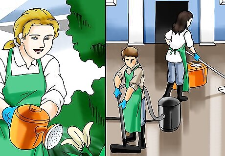 Maintain a strong property image. When potential buyers come to view a home, they should be able to imagine themselves living inside that property. But if the property is rundown or poorly cared for, it may turn off potential buyers before they even make it through the door. Prior to hosting an open house, you should conduct any necessary maintenance and upkeep to create an impressive property display. Mow the lawn, trim any hedges on the property, and water the grass and flowers to create a welcoming yard. Consider planting a few flowers near the entrance to make the property look even more inviting to visitors. Clean the interior of the house. That may require sweeping/mopping the floors, dusting the walls and furniture, and washing the windows inside and out. During the winter, try to find attractive photos of the exterior and landscaping from the spring and summer to show buyers, especially if the lawn is in good condition and flowers are in bloom.