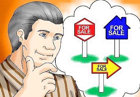 Put up signs. Signs may seem like an old-fashioned form of advertising in the digital age, but according to real estate experts, they still work. Most real estate brokers will use an array of signs to draw in customers, including signs of different colors and sizes, and different types of signs. Some real estate brokers advertise perks like coffee and giveaways, as well as local foreclosures that may draw in buyers looking for a deal. Signs should be placed strategically around the neighborhood to lead interested parties to the property. Signs are invaluable for drawing in everyone from determined house hunters to casual open house explorers. Some real estate brokers recommend putting up the majority of signs about two hours before the actual open house. That gives passersby enough time to finish whatever errands they may be running and make their way to the open house. There is no firm rule on how few or how many signs to use. Be sure to put up signs on nearby corners that will guide in passersby, though the best locations will depend upon the property. If you'd like to use more signs make sure they aren't overcrowded. The type of signs used will vary, depending on the community and the intended audience. Signs that appear homemade may draw in bargain hunters, while official agency signs tend to work best for more elegant, expensive properties. However, some properties in gated communities may be governed by community-wide restrictions on what kinds of signs or how many signs are permitted.