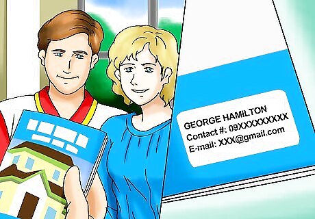 Hand out community information. During the open house, it's a good idea to print and hand out additional information that may not be covered in the property's brochure. Some important information that potential buyers may be interested in include details about local schools, information about the larger community or township, and of course any relevant information about the actual property. Be sure that your name and contact information are printed in bold, visible font on each handout you distribute.