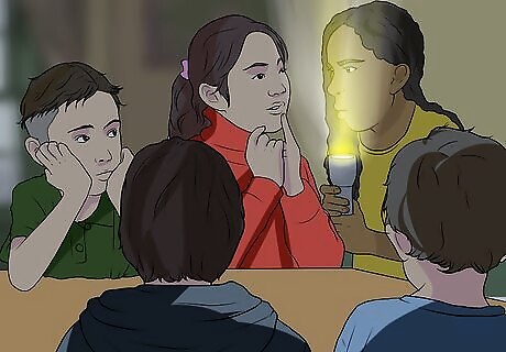 Tell scary stories. As the night goes on, it can be fun to get a flashlight and tell scary stories in a dark room. Make sure all your friends are comfortable with scary stories and be sure to stop if you see someone getting too scared. Instead of scary stories, you can also tell jokes, come up with skits, or play truth or dare! You could also go around the room and have your friends tell stories about the most fun they've ever had on their birthday. It might give you some ideas for games or help you plan your next birthday party!