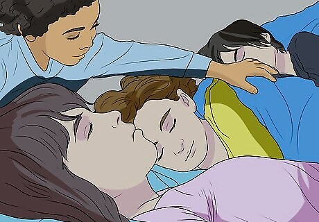 Make sure everyone has a place to sleep. It might be fun to have all your friends sprawled on a giant quilt or pallet in the living room, but first make sure everyone is comfortable before you turn out the lights and get ready for bed. Be respectful of your friends that want to go to bed early. If someone needs to be up early the next day or they’re used to going to bed at a certain time, find a place where they can sleep in peace and quiet. It may be a good idea to tell your friends to bring their own sleeping bags. If you’re short on bedding, tell your friends to bring their own sleeping gear. Sleeping bags are fun and easier to put away than sheets and blankets—just roll them up and you’re ready to go! If you like camping, see if your parents will let you pitch tents in the backyard and camp out. Make sure you have enough room in the tent for all your friends to sleep comfortably.