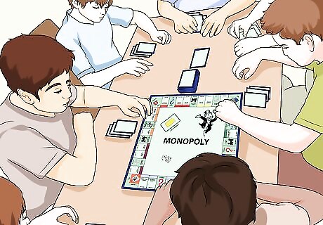Play some fun games or activities. There’s practically no limit to the activities you can choose for your sleepover, but it’s good to play games that will be fun and easy for everyone. Think about the things you and your friends usually do together and choose an activity you think they’ll enjoy. You could decide to: Play a board game like Monopoly, Risk, or Sorry Play a round of Twister Play capture the flag Play video games Make a craft project Play dress up Have a scavenger hunt Play with dolls or action figures It's sometimes helpful to plan more than one activity, or have a couple of different games going at once so your friends can choose which one they like more. It’s also OK to come up with new games as the party goes on—you might end up discovering a game you really like!