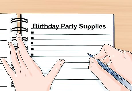 Make sure you have the right party supplies. Have a parent or adult family member go with you to a craft store or grocery store to buy everything you need for your party. If you’re planning on making a meal or offering snacks, make sure you have all the right ingredients. Make a checklist before you head to the store so you can keep track of your supplies. Consider going to a dollar store to buy your supplies. Dollar stores are inexpensive and you can often get more bang for your buck!