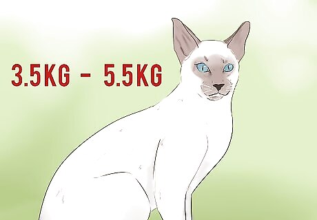 Recognize a medium body size and weight. The Javanese is a medium sized cat with a long body. Male cats tend to weigh about 8-12 pounds (approximately 3.5 kg to 5.5 kg) while female cats are smaller in size, weighing under 8 pounds. Both male and female cats are very slender and deceptively muscular.
