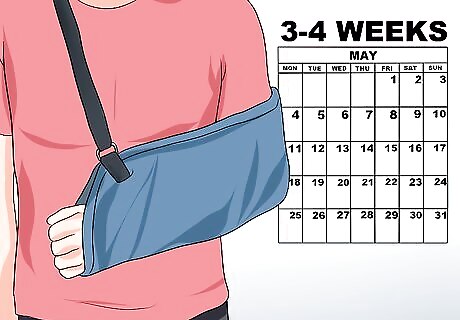 Immobilize your shoulder. After your shoulder has been re-aligned, it will need to be immobilized for the first part of the healing period (generally three to four weeks). This is usually accomplished using a sling. After initial immobilization, your physician will recommend a specific rehabilitation program for you as your shoulder begins to feel better. Following through with the rehabilitation plan is key for recovering full range of motion. It is especially important if you are an athlete and if returning to optimum sports performance is your goal.