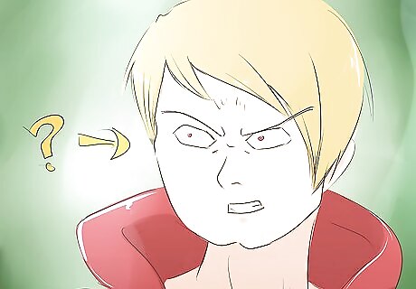 Put on your poker face. Most bullies want a reaction from you, whether it be turning red with anger, pale with embarrassment, or expressing fear with tears. Most bullies enjoy when they can tell their words and actions bother you and will continue bullying you to get the same reaction over and over again. The term “poker face” is used to describe how people make bets in a poker game - they use a blank expression on their faces when betting so other people in the game cannot read their expression or tell that they may be bluffing. When a bully starts taunting you, put on an emotionless and expressionless poker face to send a message that the teasing and bullying will not get to you. Don't give the bully the satisfaction of showing a reaction to their hurtful words or actions.