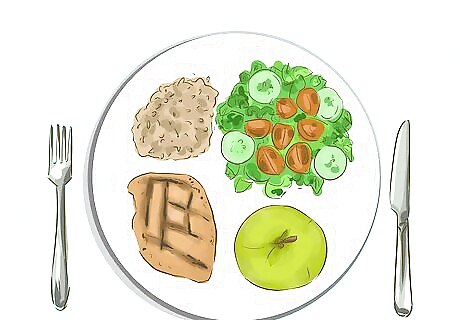Eat natural, unprocessed foods. Avoiding processed foods also helps eliminate additional sugars and salt that are added to foods and emphasizes foods with the highest nutritional density and quality. Eating unprocessed foods helps you eliminate most of the things from your diet that lead to obesity, while replacing them with healthy, natural foods, like fruits, vegetables, and lean meats. Keep your food as close to its original or natural form as possible. Eating natural helps you avoid synthetic pesticides, antibiotics, and hormones that can be found in non-organic or processed foods. These harmful additives can potentially affect your overall health and hormones.