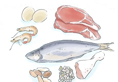 Eat healthy sources of meats. When you eat meat, eat lean sources. Increase the amounts of skinless poultry you eat. Limit your red meat intake. The poultry you buy should be hormone and antibiotic free and free-range. When you do eat red meat, make sure to eat grass-fed and antibiotic and hormone-free beef and buffalo. Don’t eat the skin on the poultry. The skin can be high in animal fat as well as any added hormones and antibiotics.