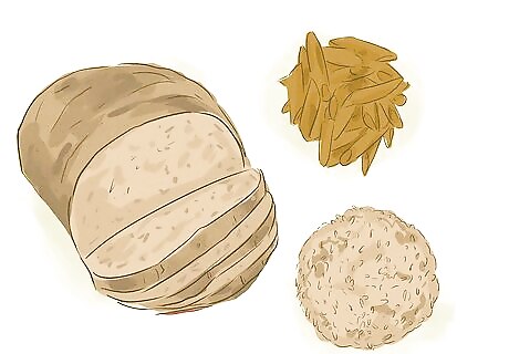 Include complex carbohydrates. At least 80 – 90% of the total carbohydrates in your diet should be complex carbohydrates. Complex carbohydrates are recommended to lower the risk of type 2 diabetes, cardiovascular disease, and obesity. Refrain from eating simple carbs. Complex carbohydrates are found in whole, unprocessed foods, such as whole grains, peas, lentils, beans, and vegetables. Simple carbohydrates are often found in processed foods. A good rule is to never eat white foods. This means no white bread, white pasta, or white rice. Also avoid candies, cookies, cakes, and other snack foods. This helps control weight gain because complex carbohydrates take longer to digest. This allows you to feel fuller longer, which generally means that you are likely to eat less.