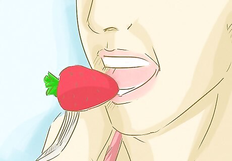 Incorporate more red produce. Red produce has been found to promote sexual health. Tomatoes have been found to help men produce less abnormal sperm due to the lycopene found in them. Strawberries are another red fruit that can help with sexual health. Not only is red a sexually stimulating color, but the fruit has folic acid, which can help reduce birth defects and increase sperm count. Watermelon, a fruit with a pink-red center, contains L-citrulline. L-citrulline is an amino acid that can help make men’s erections harder. Watermelon can also help increase blood flow, which helps with arousal for both men and women.