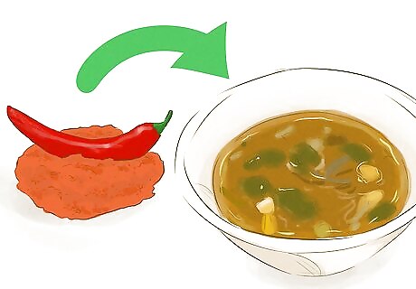 Add cayenne pepper. Cayenne pepper and other spicy foods can help increase your sexual health. Spicy foods, like cayenne pepper, contain capsaicin. This helps promote circulation health, which gets blood flowing to the penis and clitoris.