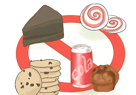 Limit your sugar intake. You should reduce the amount of sugar in your diet. You can avoid any added sugars by sticking to unprocessed foods. Reading labels can help you figure out how much sugar is in a food. Simple carbs also include sugars added to foods, like glucose, sucrose, fructose, and high fructose corn syrup. Processed foods include both simple carbohydrates and added sugars, which can increase the risk of various disorders including weight gain.