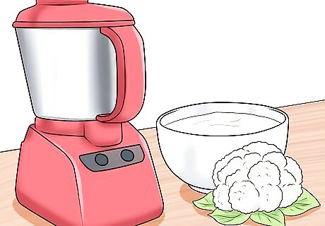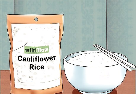 Use cauliflower as rice. Improve your health by substituting cauliflower in place of high-calorie and high carbohydrate foods. You can purchase cauliflower rice premade and frozen from most supermarkets, or you can make it yourself by coarsely chopping raw cauliflower in a food processor or blender. To cook cauliflower rice, saute on a medium heat for about five minutes, or until golden brown on the outside and tender on the inside. Substitute in cauliflower rice for steamed or brown rice in almost any recipe. Herbs, spices, and other ingredients can be added to create a healthier substitute for most rice dishes.