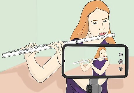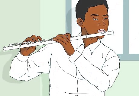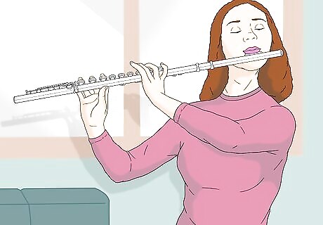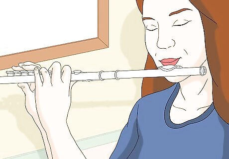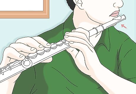 Support the air stream. Think about activating your core and belly muscles to physically "support" the air and produce a strong, steady stream. This will also help you play in tune, which always makes for a better tone and is extremely important when playing with others. Listen to your tone while blowing into the flute, too. Think about sounding resonant and full. Imagine that you are vibrating the whole length of your flute with your breath. Shape your lips. Making the hole in your lips smaller can produce a better tone. The air stream is more direct and you do not use as much air. On the other hand, make sure not to make the hole too small, or you can cut off the airflow and get an airy or forced sound.