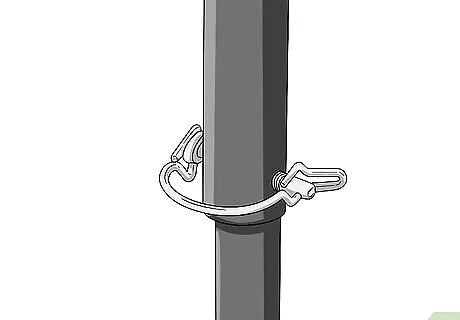 Clip the third leg to the bracket to finish installing the handrail. Swing the leg back and slide it through the bracket. Look for holes on both the leg and bracket. After aligning the holes, slip the clip through and press its ends closed to finish the installation. Make any final adjustments needed, then walk the RV’s steps in comfort with your new rail. Combination rails usually have adjustable bands on the legs. Rotate the bands clockwise to tighten the legs and keep them steady during use. When you’re ready to pack up the rail, remove the metal clips to detach the legs from the brackets. The brackets stay in place so you can easily reassemble the handrail next time you wish to use it.