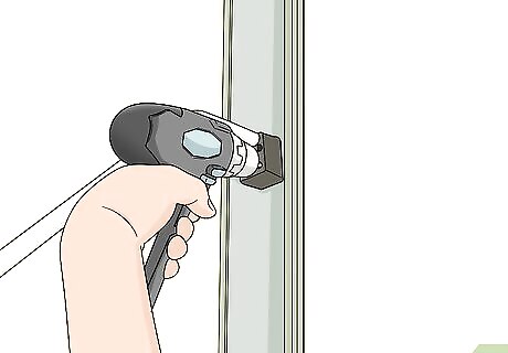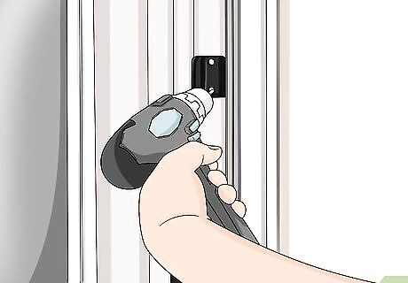 Drill a pair of ⁄4 in (0.64 cm)-wide pilot holes through the wall. Use a power drill to create holes through each of the marks you made. Make the holes 2 to 3 in (5.1 to 7.6 cm) deep depending on the length of the screws included with the handrail. Drill carefully to avoid causing any unnecessary damage to the RV’s exterior. Most brackets use 2 screws, but some may require you drill additional holes. You can size pilot holes with tape. Measure about 2 in (5.1 cm) up from the tip of the drill bit, place tape there, then drill. When the tape reaches the wall, the bit will be 2 in (5.1 cm) inside of it.