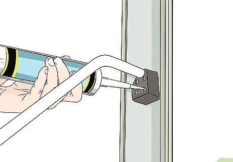 Fill the holes with RV silicone to stop leaks from forming. To ensure you don’t end up with water breaching the comfort of your RV, use a product labeled as safe for use with recreational vehicles. Fit the canister inside a caulk gun, then cut open the nozzle with sharp scissors. Apply the silicone directly to the holes, filling each of them until they are level with the rest of the RV’s exterior paneling. If you are able to, have someone hold the handrail in place, then add the silicone through the brackets. Fill the bracket holes for a thicker layer of sealant to guard against moisture. RV silicone is sold online by RV suppliers and at many hardware stores. Make sure you’re using an RV product instead of a household one. You could also use an RV sealant or caulk.