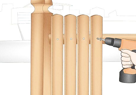 Attach each panel with screws. While you work, it's usually a good idea to use two-three inch galvanized wood screws to attach your panels securely. Drill pilot holes to keep the wood clean and sharp-looking, then install enough wood screws to attach the panels securely.