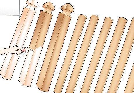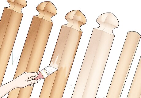 Stain the fence posts and panels. Before installing the fence, you'll need to complete any staining and painting that you'd like on the wood. It'll be easier to do this before you put it together. This should definitely be done on fence posts that you're cutting yourself, and also possibly on pre-fab models that are untreated. Brush the posts and fencing panels with oil-based wood stain. Wipe off excess stain and allow everything to dry completely.