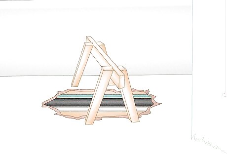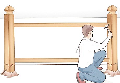 Support the fence panels as you work. Whatever kind of fence you're installing, it's a good idea to support the crossbeams with some supporting blocks to avoid putting stress on the wood as you work. You can use wooden wedges to level the panel.