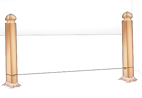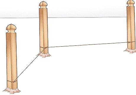 Set the height between the fence posts with twine. In most pre-fab kits, twine is used to connect the fence posts to the stakes and make sure that everything will be installed at an even height to match the fencing panels. If you're installing your own fencing, you can use the same technique. Tie twine to a corner or end post, about 6 inches (15 cm) from the ground. Stretch the twine taut to the position of the next corner or end post. Affix it to a stake at the same height to use as a reference.